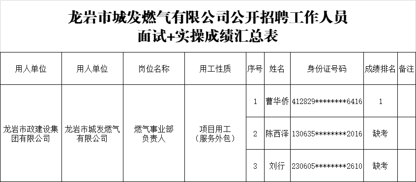 • Time:2025-05-12龍巖市政建設集團有限公司公開招聘工作人員面試+實操成績排名的公示