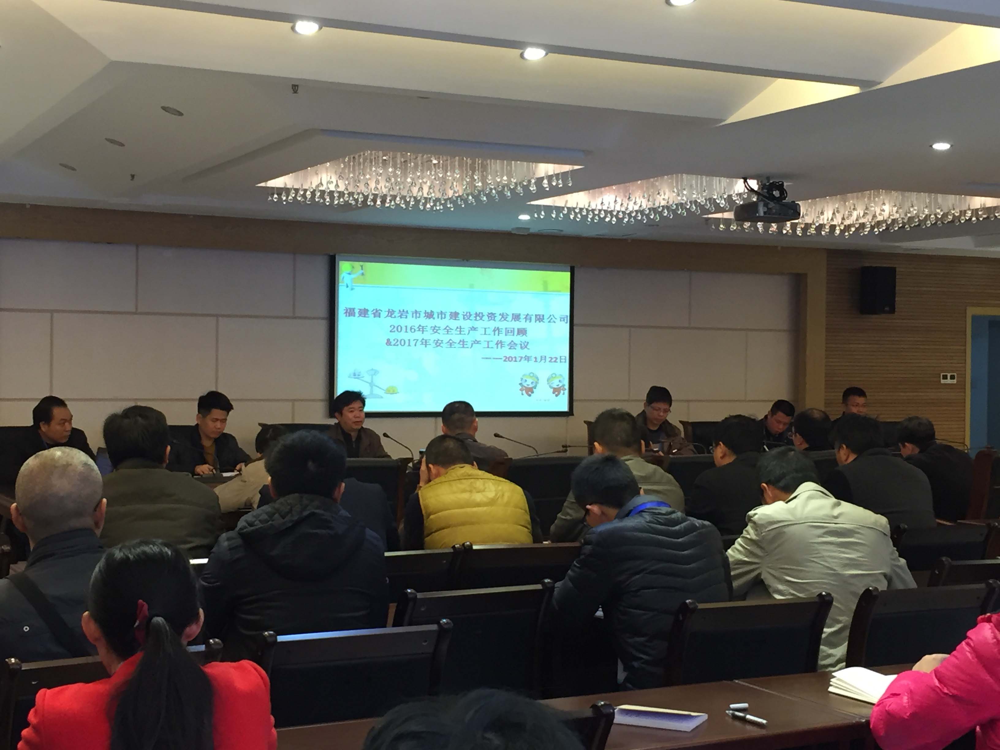 1月22日,徐旺興總經理在市住建局四樓會議室主持召開2016年安全生產工作回顧及2017年度安全生產工作會議,公司全體員工參加了會議。會上,徐總經理簡要回顧了我司2016年安全生產工作情況,通報了2016年公司安全生產工作目標考評情況,分析了當前安全生產工作的得失,并就2017年度安全生產工作進行部署,制定了新一年度的安全生產工作計劃。會議強調公司領導必須嚴格落實“黨政同”和“一崗雙責”要求,明確提出2017年安全生產工作重點是加大力度推進安全生產標準化工作,保持安全生產工作形勢穩(wěn)定發(fā)展。               質安科    陳彩霞)