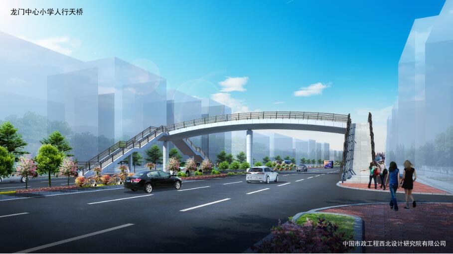 龍門中心小學人行天橋位于羅龍西路龍門中心小學西側約80米,主梁采用鋼箱型連續梁,腹板為圓弧形,主梁全長33.8米,寬4米。梯道坡度1:2,長16.9米、寬米,中間設置緩步平臺。總投資約400萬元。