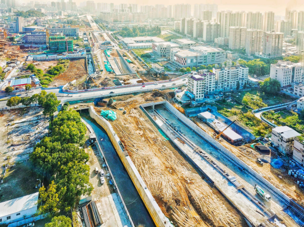 2017年9月開工。目前,下穿車型通道U型槽、箱型通道、排洪溝主體已完成管廊主體結構已完成45米