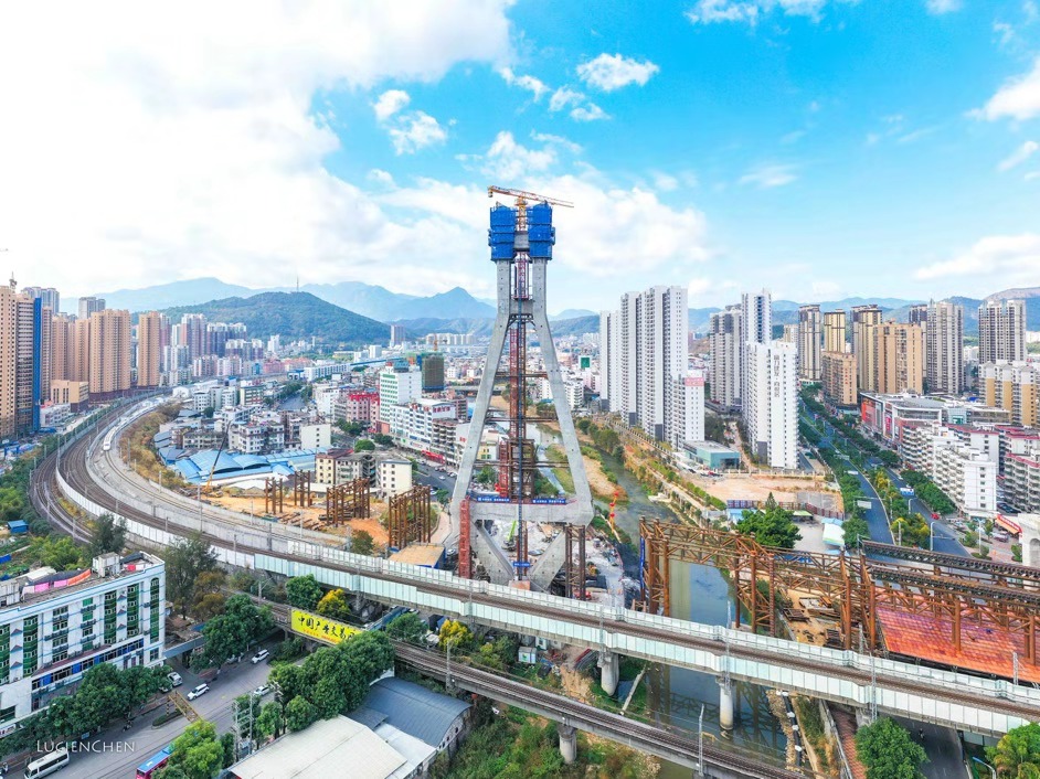 龍巖大橋主塔實(shí)現(xiàn)順利封頂