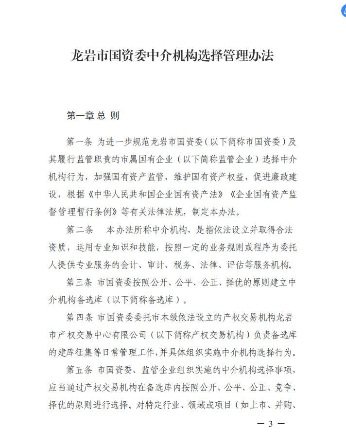 龍巖市國資委關于印發中介機構選擇管理辦法的通知(龍國資[2020]45號)
